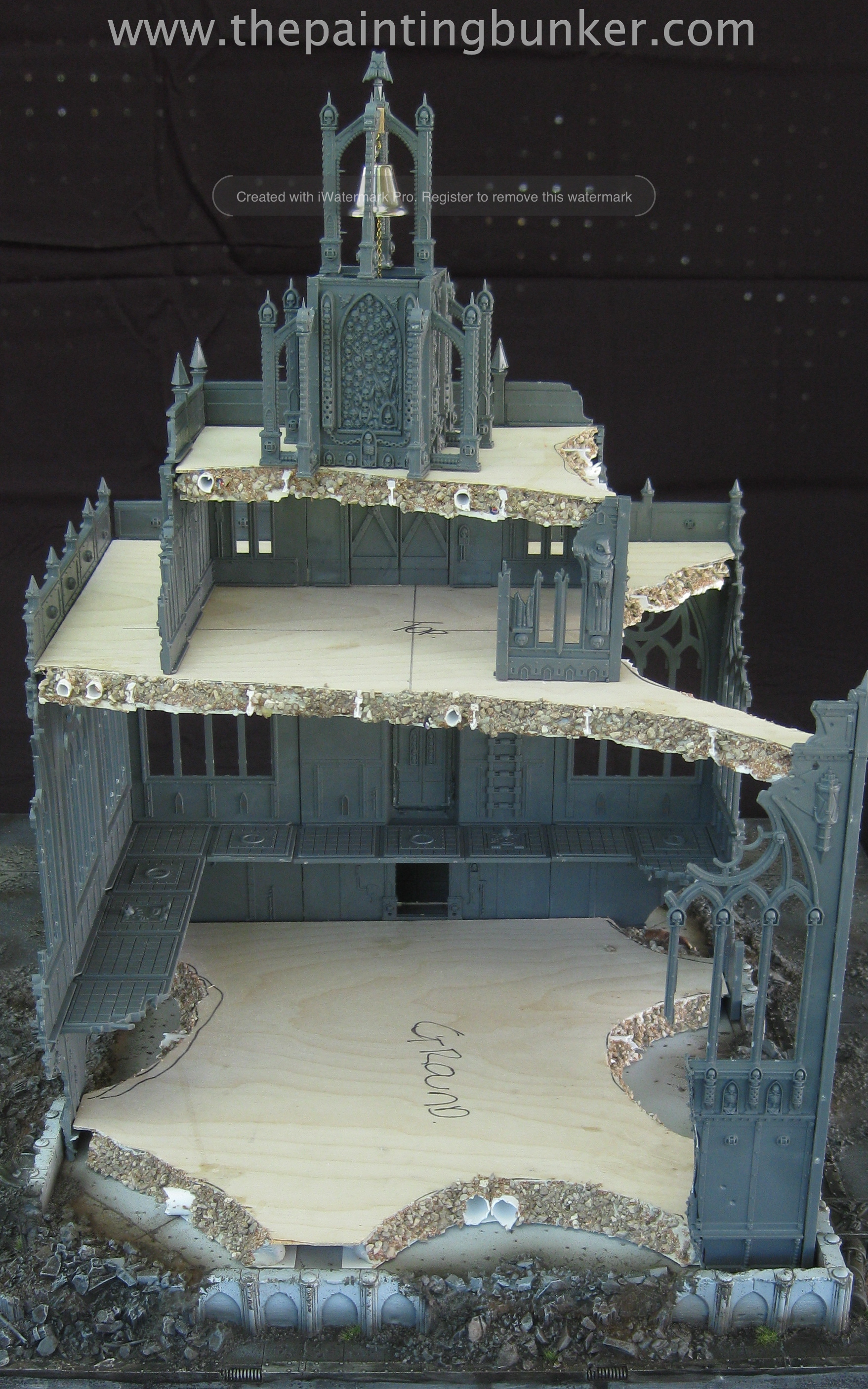I’ve been very busy over the last two days working on the scenery for the recently completed Forge World Realm of Battle Cityscape boards. As I’ve mentioned in previous posts, I really want the white marble Shattered Plaza board to have a massive Cathedral on it. No serious 40k board is complete without one, and well… they just look good. So I’ve set out to create a monster. Lets take a look at the pictures and you’ll see what I mean.