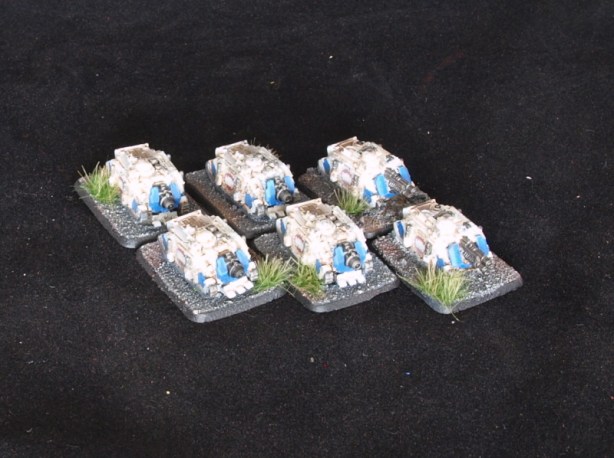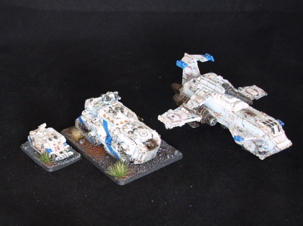 Next up are three Thunderhawk transporters.  I really just like the idea of these things (much like the Mastodon).  I’ve not yet used them, but to though of being able to drop six rhinos anywhere on the board is very appealing.