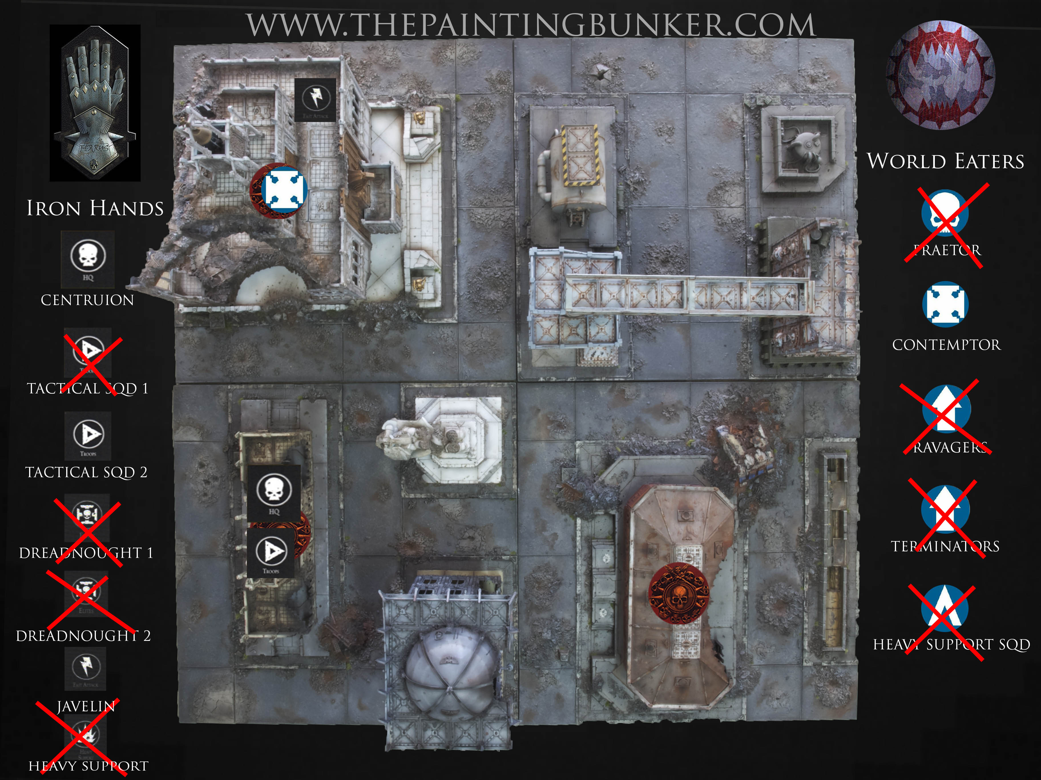 The Tactical squad charge the Terminators. With blinding anger at killing a servant of the Emperor that had been given the greatest honour by the Machine Cult of Mars, interned in a Dreadnought chassis. They attack with uncharacteristic ferocity no doubt imbued by the desecration of felling the Dreadnought and the scale of the heretics betrayal. The traitor Terminators are wiped out in the uncontained rage and fury of the assault from the Iron Hands.
