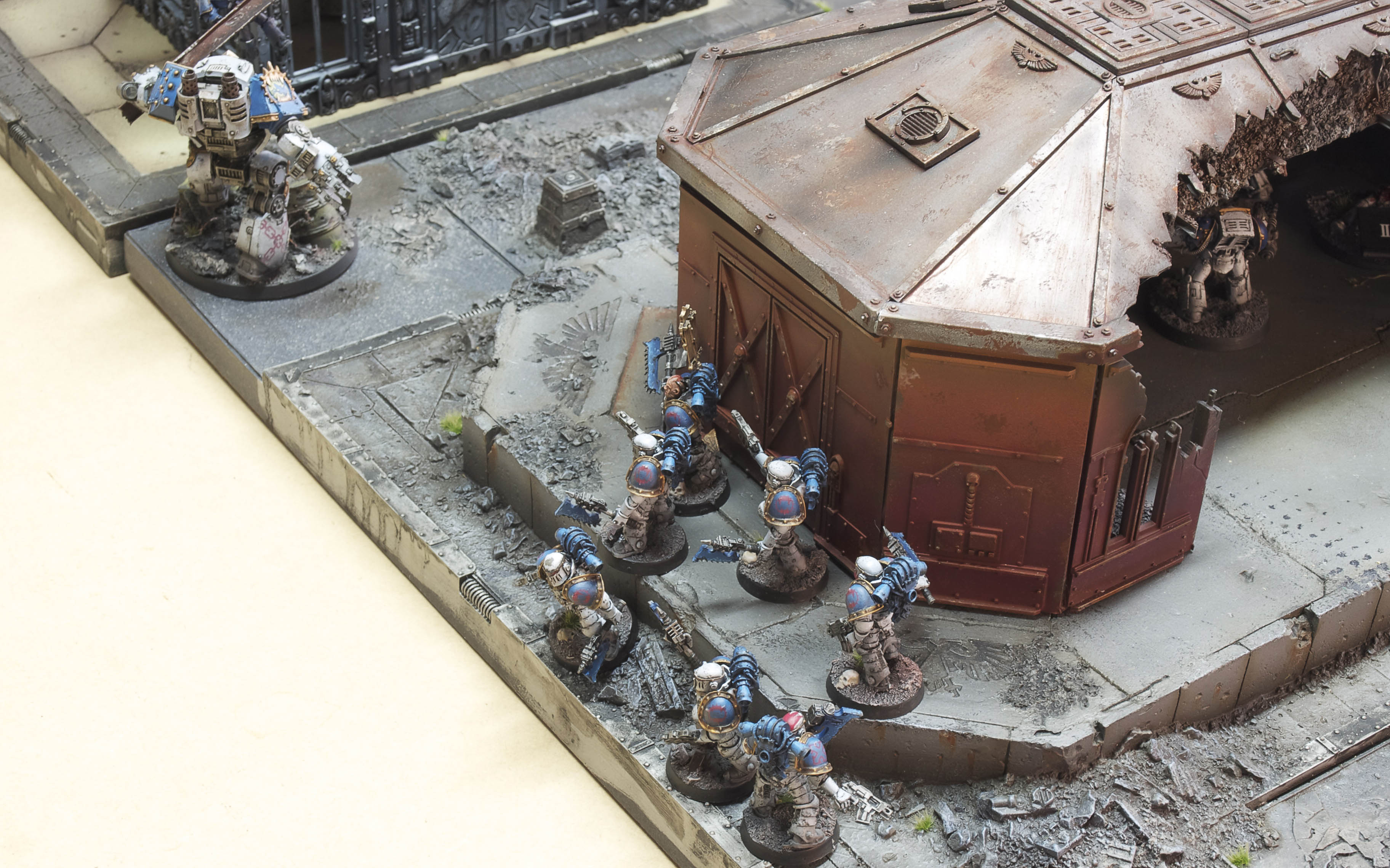 The Heavy Support Squad and Terminators secure the building with their heavy weapons and strong defensive ability. The building providing superior cover and concealment