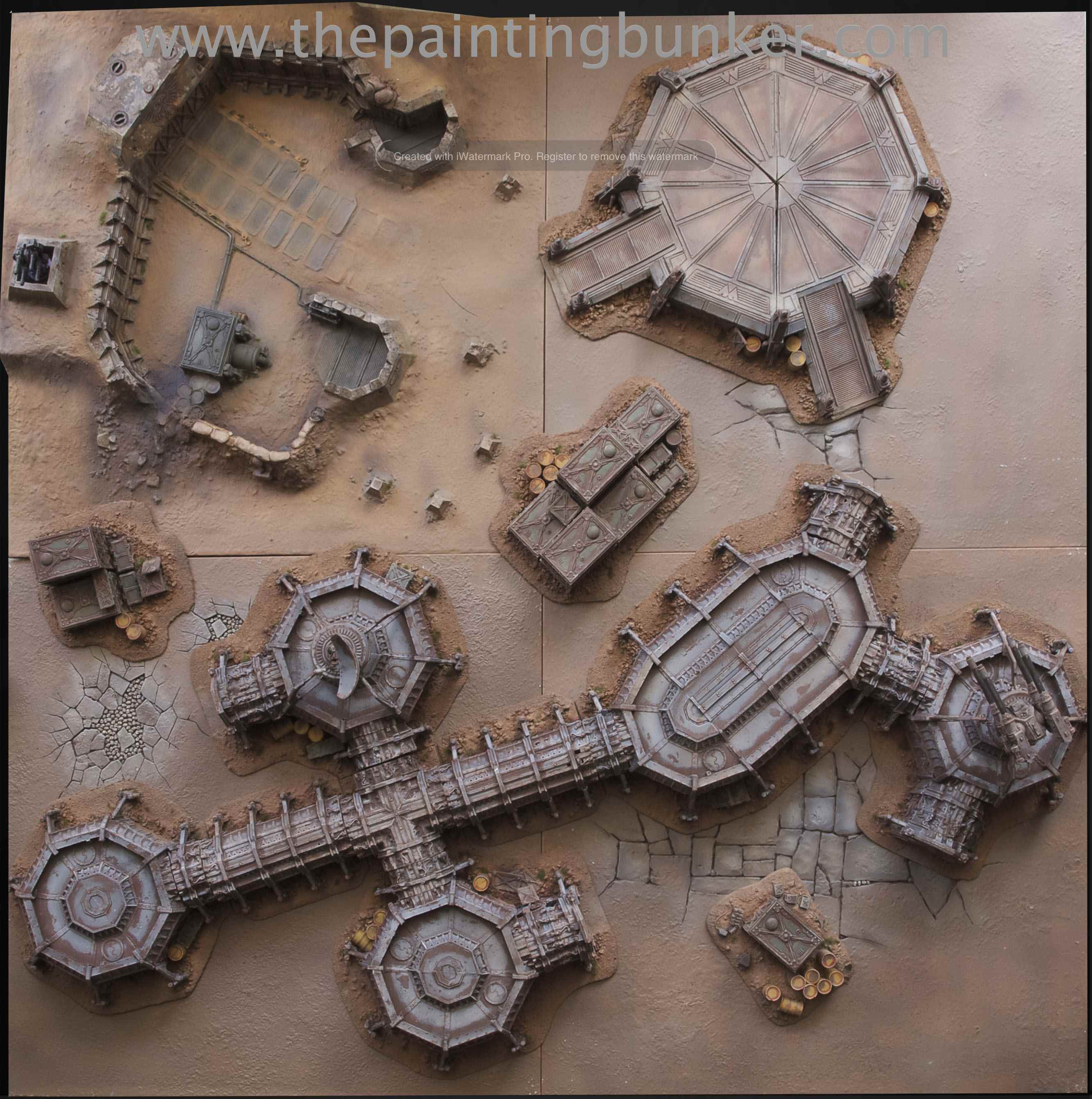 The trees are have magnets on the bottom to facilitate them being moved for more accurate placement of units. The base is .55mm thick sheet metal with sand glued on and then painted.