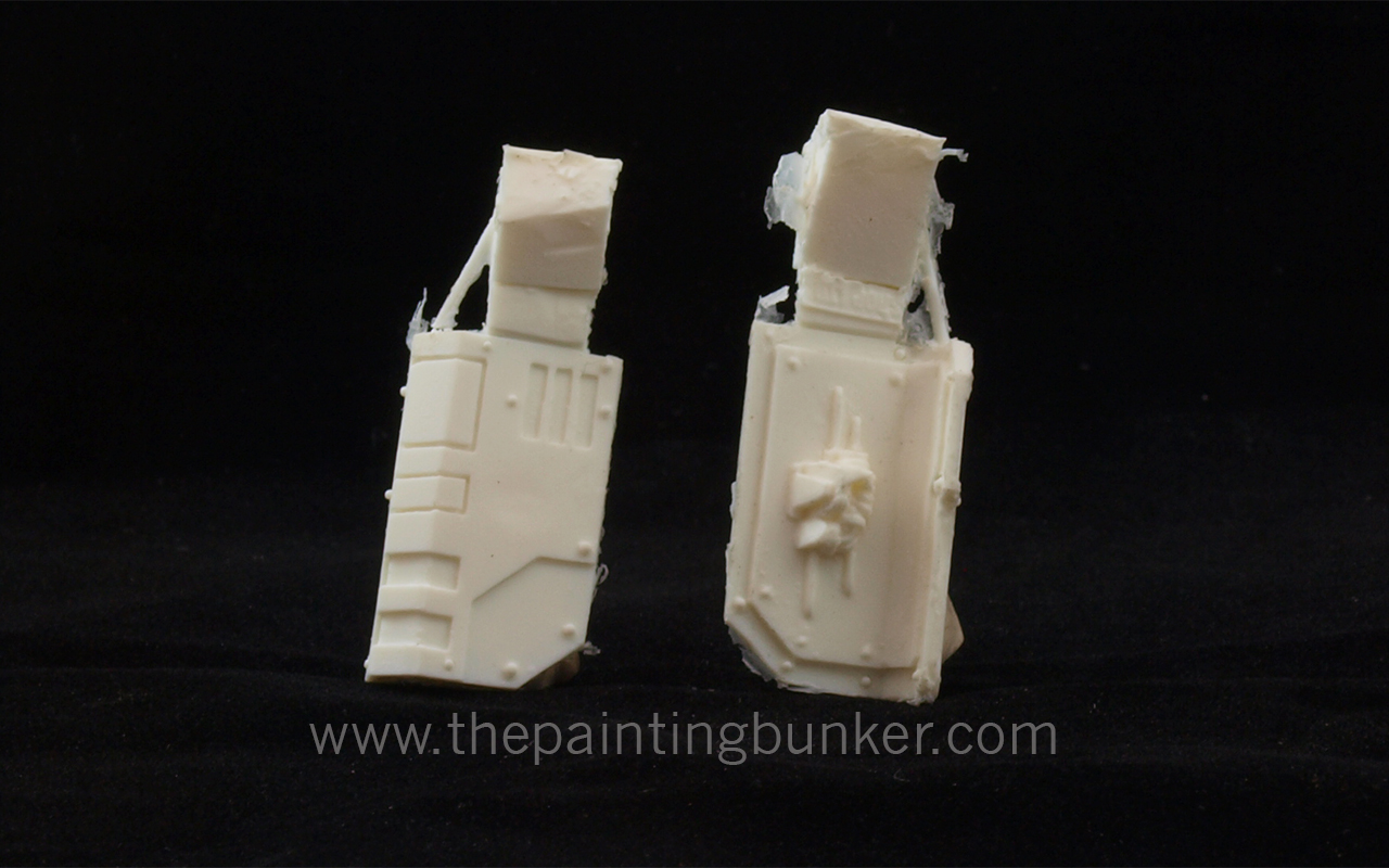 This is an alternate version of the Space Marine Terminator Storm Shield that I made some time ago for my Iron Hands army as I was really unhappy with the ones that come with the plastic kit, so I went about making my own. I wanted them to still use the same “design language” that the Space Marine range uses so they would fit in but wanted it to look a bit more creditable and solid looking rather than the current one.