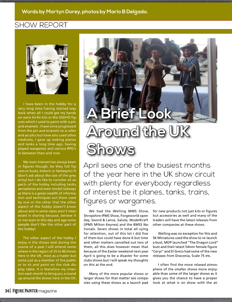 Another interesting article is a review of various modelling shows in the UK such as Salute, Forgeworld open day and various IPMS events. I really like this as it offers readers the ability to see how other modelling enthusiasts do business. I’m a really big believer in looking outside your chosen corner of modelling and seeing how others apply technics and achieve effects to give you a more rounded and balanced approach to modelling. Articles like these give readers who may only paint figurines the opportunity to explore how say, WWI Bi-Plane modellers detail their planes wing rigging to achieve a realistic effect. This technique may then be applied to figurines bringing a new technique and take the hobby to a new level. It also exposes readers to events that they may never have heard of before that they can visit.