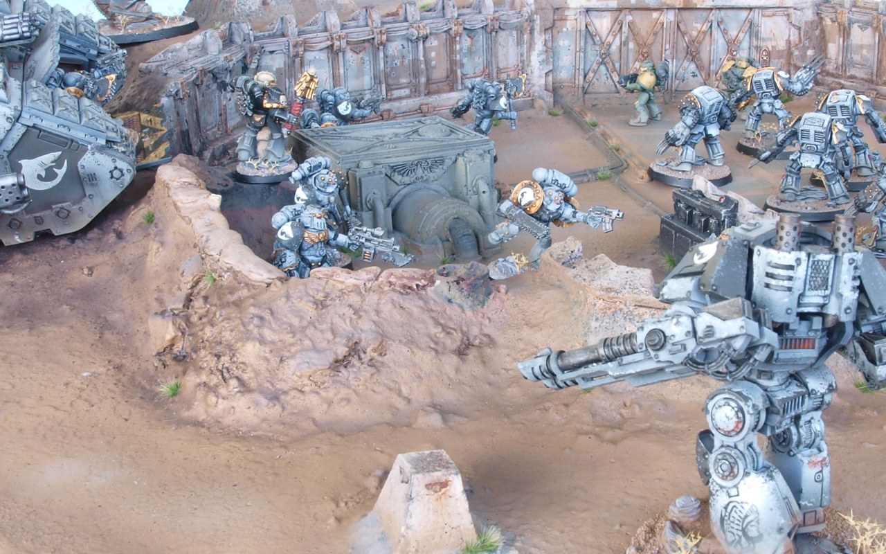 This is the game that I should have won, and have been reprimanding myself ever since. I made a few very small, but tactically costly mistakes that meant I lost by the narrowest of margins. The final move of the game that made me want to scream was my “Wolf Lord”, Ruin Priest and a squad of “Grey Hunters” charging a squad of tactical marines for victory. I needed a 6″ roll to get into close combat. I made the roll. The tactical marines with a plasma gun overwatch fired. The plasma gunner rolled two sixes and two wound rolls. Smoking two of my grey hunters and thus turning a 6″ charge into a 7″ charge. Fail. Face Palm. Angry face. Good game though, probably the most challenging game over the weekend actually.